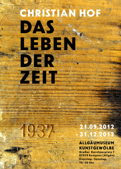 DAS LEBEN DER ZEIT 21.09. - 31.12.2012 AllgäuMuseum - Kunstgewölbe Großer Kornhausplatz 1 87439 Kempten (Allgäu) Eröffnung: 20.09.2012 19 Uhr Einführung: Ursula Winkler M.A.