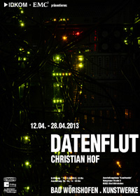 DATENFLUT | 12.04. - 28.04.2013 Ausstellunghaus "Kunstwerke" Kemptener Straße 3 86825 Bad Wörishofen Eröffnung: 12.04.2013, 19 Uhr Musik: Kleiner Drei Einführung: Stefan Gottschling unterstützt von: ID.KOM + EMC² ![]() |