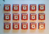 ![]() Feuerprobe"Die Feuerprobe ist ein archaisches Element der Gerichtsbarkeit, bei der eine Aussage durch Feuer bekräftigt wird, welches durch göttliche Hilfe keine schwere Brandwunde zufügt. Der Begriff wird heute zunehmend synonym für eine Bewährungsprobe gesetzt, die Bewährung im tatsächlichen Einsatz meint." [Wikipedia] Was erwarten Betrachter von der Kunst? Kann nur Kunst sein, was schön ist? Kann nur Kunst sein, was gekonnt ist? Kann nur Kunst sein, was einzigartig ist? Steckt die Kunst schon im Werk oder entsteht sie erst im Kopf? Es geht in der Kunst aber nicht allein um das Werk, sondern auch um den Betrachter und somit um den imaginären Dialog zwischen diesen beiden Parteien. Jedes dieser "Gespräche" ist einzigartig, denn jeder Betrachter bezieht seine eigene Position. Manchmal gewinnt er dabei neue Erkenntnis, manchmal nicht. Mit seinem Versuch, die Welt zu beschreiben, kämpft der Künstler um jeden einzelnen. Eine tägliche Feuerprobe. Das Werk selbst ruht dabei natürlich unbeirrbar in der vom Künstler installierten Souveränität, an die er selbst ja glauben muss. Die kleinen Scheiben in den Feuermeldern sind aus bruchsicherem Plexiglas, hier kann gar nichts gemeldet werden.