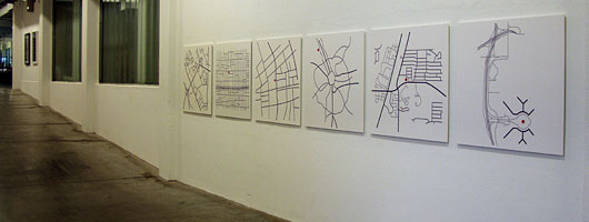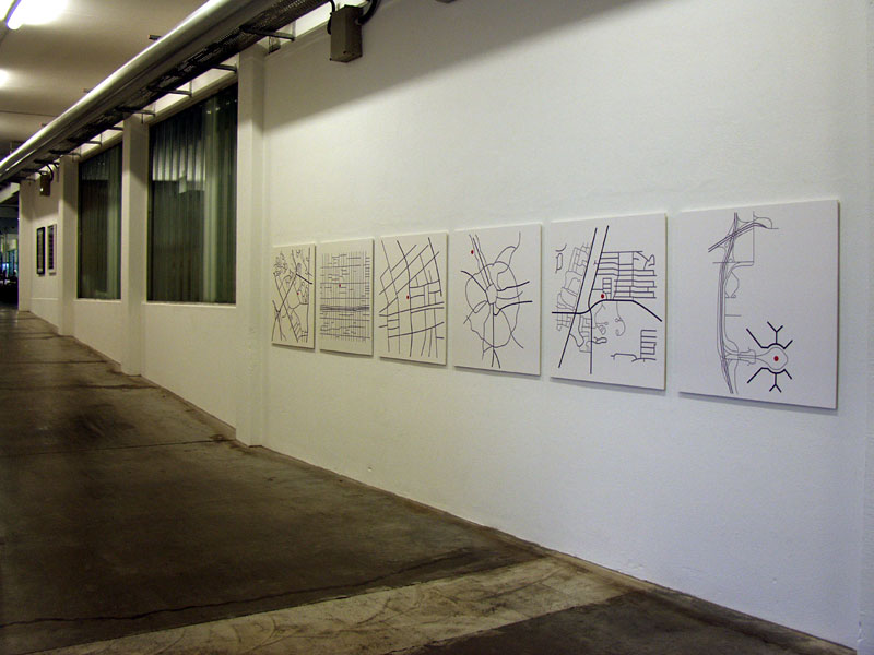 ![]() StandortbestimmungenDie sechsteilige Serie "Standortbestimmungen" setzt sich mit der Suche nach Lebensinhalten in der heutigen Zeit auseinander. Unter Verwendung gängiger Suchmaschinen führt die Recherche im Internet nach dem Weg zum Glück und zu höheren Werten in letzter Konsequenz nur noch zu weltverstreuten Anfahrtsskizzen. Aller Namensbezeichnungen beraubt, weisen sie nur noch in streng strukturierter Stille auf ihren Standort hin - der überall in der Welt liegen kann - auch nebenan, am besten aber natürlich im Herzen jedes Betrachters. "standortbestimmungen" Standorte: Leben, Wahrheit, Glück, Magie, Ehrlichkeit, Liebe 2006/10 [06-06..11] 6-teilig Vektorgrafik auf MDF Formate: 100², 50², 30², 25² (2x) Format 25² 1x in Privatbesitz Ausstellungen: 2013: DATENFLUT (standort:glück) 2010: Große Schwäbische, Augsburg (standort:glück) 2010: Rapunzel Festival, Legau (Format:100) 2010: BBK im Festspielhaus (Format:25) 2008: egobausteine (Format:50) 2006: allemüssendraußenbleiben (Format:30) |